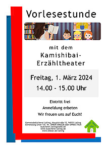 Lass dich überraschen: spannende, lustige oder märchenhafte Geschichten mit Bühne und Bildkarten des Kamishibai-Erzähltheaters. Anschließend wird gespielt, gemalt oder gebastelt.