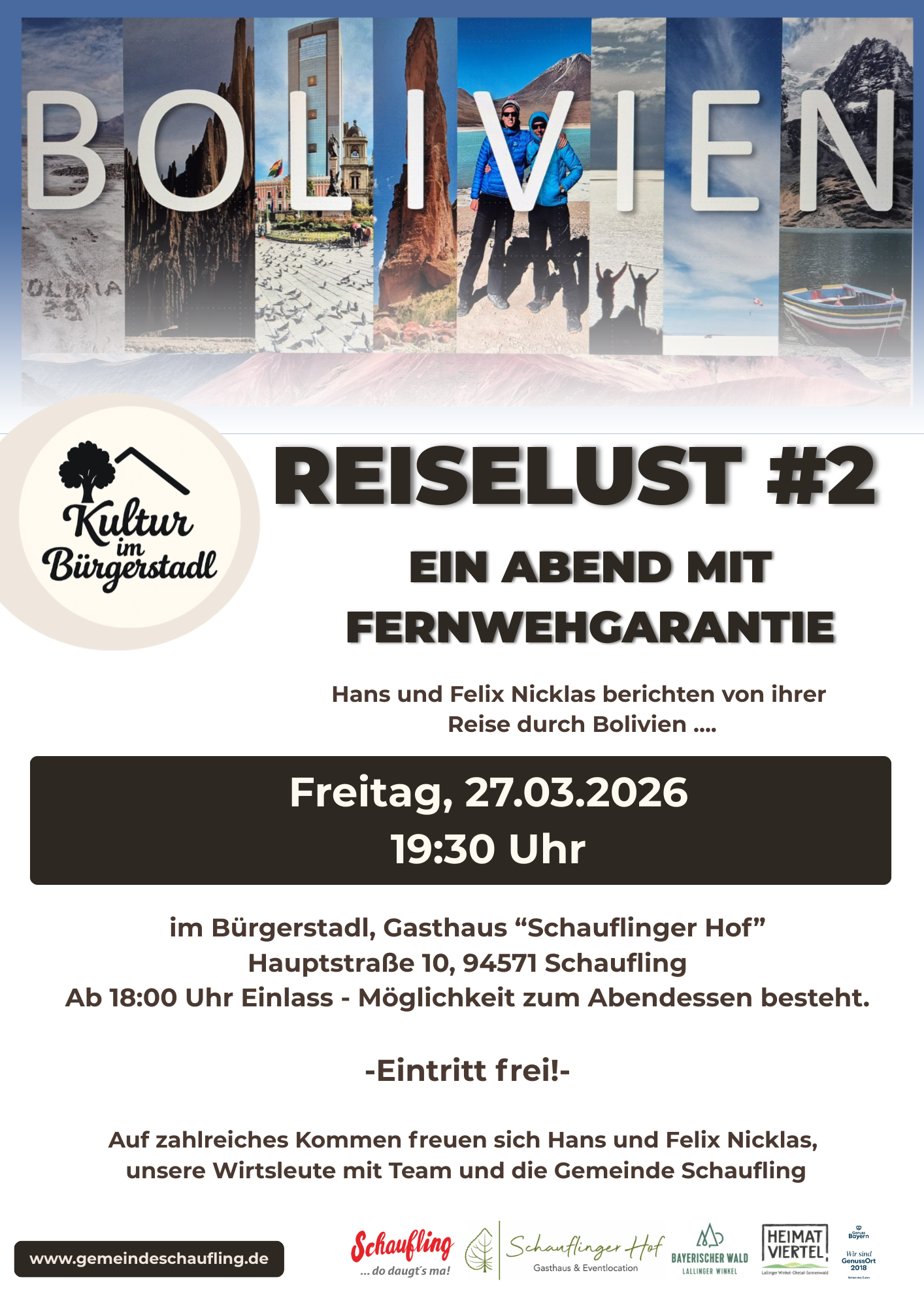 Auf zahlreiches Kommen freuen sich Hans und Felix Nicklas, unsere Wirtsleute mit Team un die Gemeinde Schaufling.