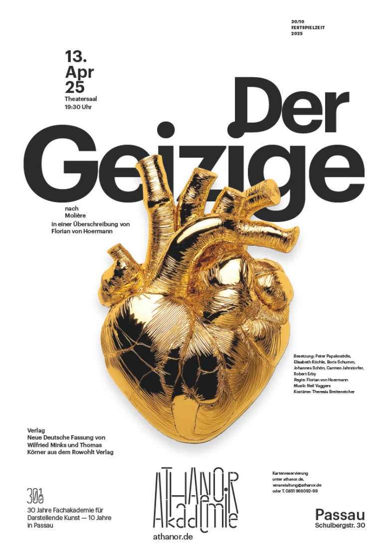 Komödie von Molière inszeniert von Florian v. Hoermann, u.a. Absolvent und Dozent der Athanor Akademie, mit ehemaligen Athanor-Studierenden